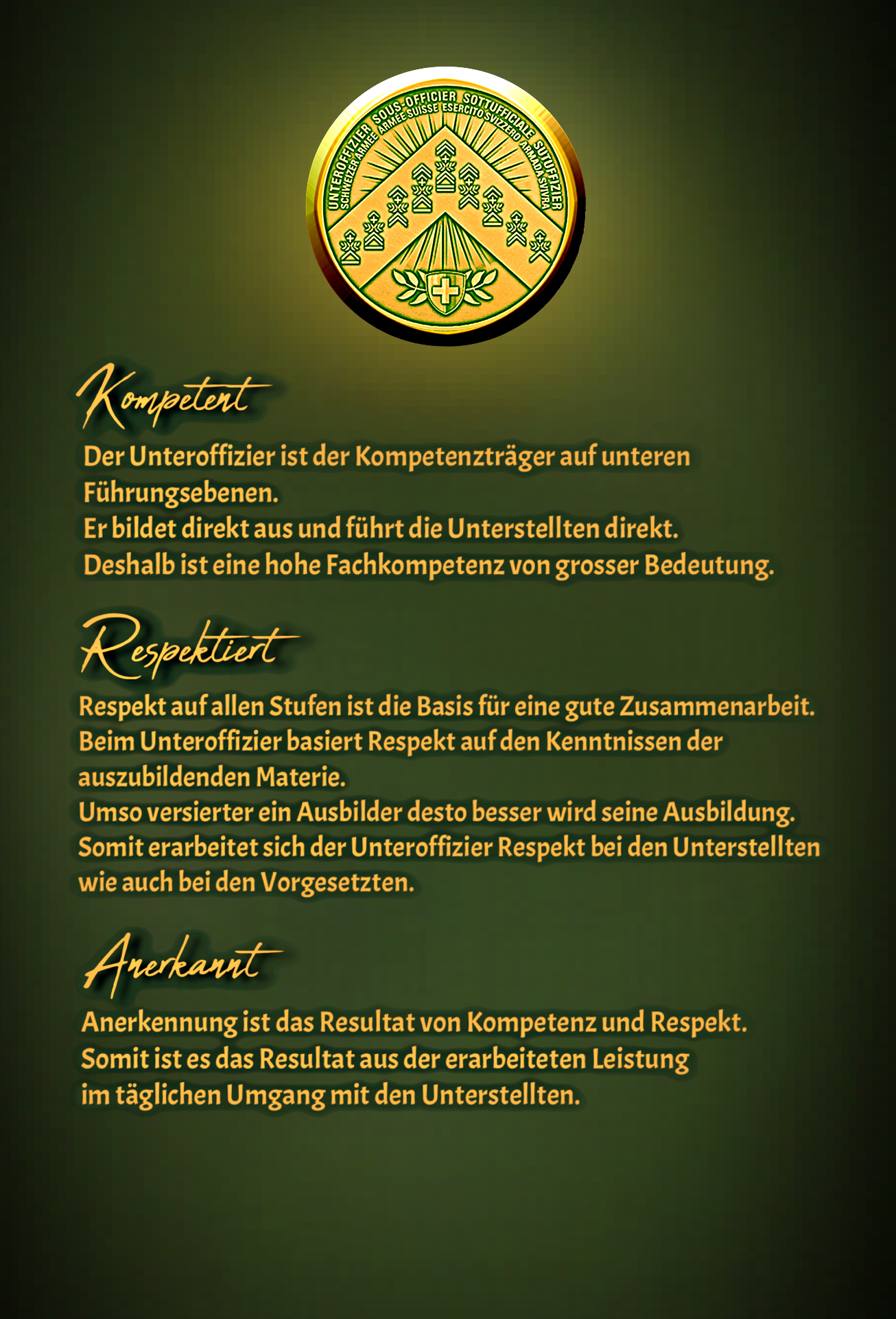 Führungsausbildung der Unteroffiziere. Das Logo verdeutlicht was erwartet werden darf. Unsere Unteroffiziere werden mit diesem fortschrittlichen Ansatz besser ausgebildet und